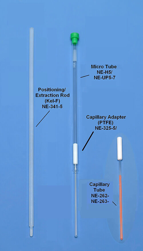 核磁管/毛細(xì)管套裝,包含一個核磁管(Micro NMR Sample Tube)、一個適配蓋子(one adapter)、一個拉取桿(one extraction rod)、5根毛細(xì)管capillaries。適于微量樣品15-115µl的測量。請參閱下表信息選擇最適合樣品體積和探針的核磁管和毛細(xì)管大小。樣品被放置在一次性毛細(xì)管中,對較小直徑樣品有著更好的分辨率。毛細(xì)管和管之間的殘余(環(huán)形)空間可以用其它材料填充,而不是直接將這些材料添加到樣品中。 這不僅使您的樣本盡可能集中,而且可用來1H,19F,2H測量。